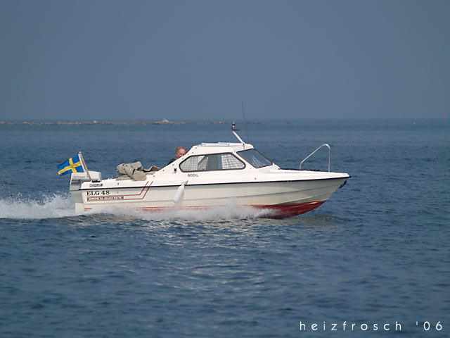 Der Wetterbericht meint übrigens, dass sofort nach unserer Abreise die Temperaturen um ca. 10 Grad fallen werden. Wir haben also tatsächlich so etwas wie einen Jahrhundertsommer erlebt. In den Nachrichten gibt es sogar Berichte über Hitzeopfer in Schweden, und das scheint etwas ganz besonderes zu sein. Ansonsten ist die Saure-Gurken-Zeit auch hier voll angebrochen, und so zerrt man sogar einen älteren Gräuschimitator in die Nachrichten, der mit Mikrofon und Verstärker einen Bombenangriff akustisch nachmachen kann ...