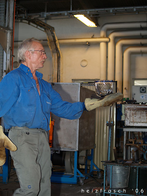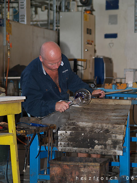 Weiter gehts nach Orrefors, wo wir mangels anderer Interessenten eine »private« Führung auf Englisch von einem freundlichen jungen Mann namens Frederik bekommen. In Orrefors wird u.a. der amerikanische »People's Choice Award« gefertigt, und dort wurden auch diverse Technologien (z.B. Mehrschichtfarbglas mit Motiven im Glas) erfunden. Wir besuchen auch dort noch den Shop, alles ist wieder sehr lecker, wieder sehr teuer, aber was soll der Geiz!