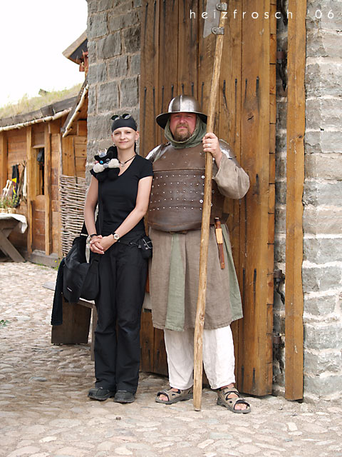 Letzter Tag vor der Abreise. Wir brechen auf zum »Salvestaden«, einer mittelalterliche Belustigungsstätte am Rand von Kalmar. Diesmal ist endlich auch Harald mit dabei – an den anderen Tagen war es ihm einfach zu bullig! Der Himmel ist bewölkt, aber es ist warm und wir haben Spaß. Der Narr poliert mir die schwitzende Glatze und bewirft uns mit einem (Gummi-)Huhn – er behauptet, dass es nicht »tot«, sondern nur »sehr relaxed« ist, und er verschwindet zügig, als wir eher auf »stoned« tippen.