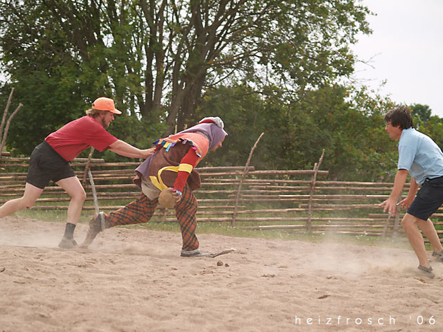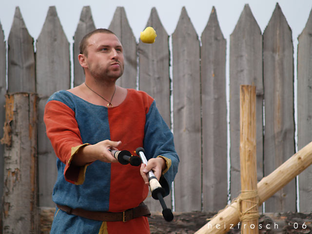 Es gibt stündlich neue Unterhaltungsprogramme, u.a. läuft ein »mittelalterliches« Ballspiel mit zwei Besuchermannschaften aus etlichen Ländern, Narr Jens unterhält das Publikum, und ein Bogenschießen-Wettbewerb zieht sich in die Länge.